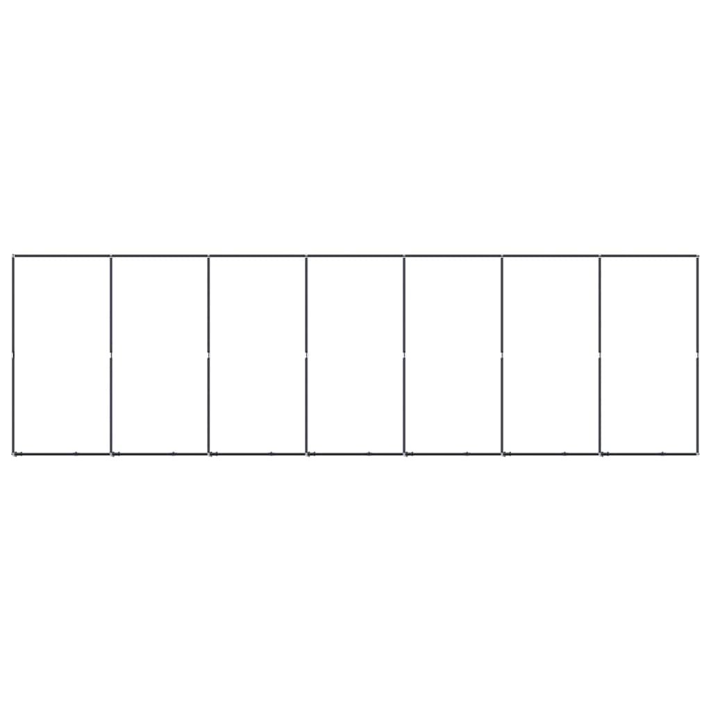 This dog kennel provides ample exercise space. The walls of steel bars help prevent mischief and unexpected accidents while enabling ventilation. Thanks to the sturdy powder-coated steel construction; this dog kennel is durable and built to last. The hinged door with a lockable latch system ensures extra security and safety for your dogs.Color: BlackMaterial: Powder-coated steelOverall dimensions: 264.6" x 75.6" x 78.7" (L x W x H)Door size: 19.7" x 70.9" (W x H)With doorsLockable latch systemAssembly required: Yes