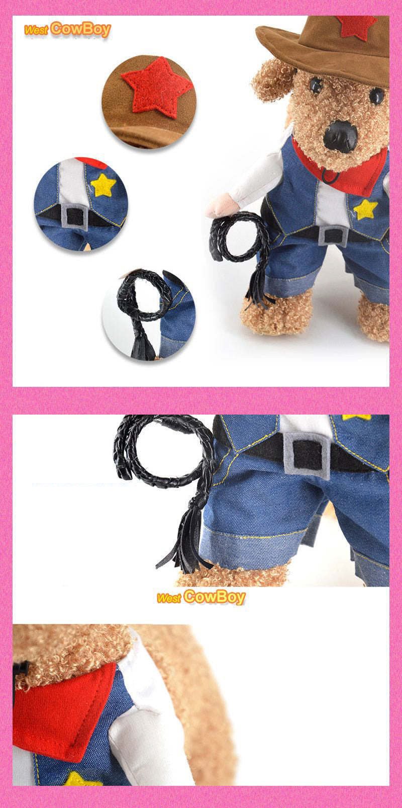 1.This Western Cowboy Dog Costume creates the illusion of a dog walking on 2 feet. Great when worn during Halloween or any time of year!