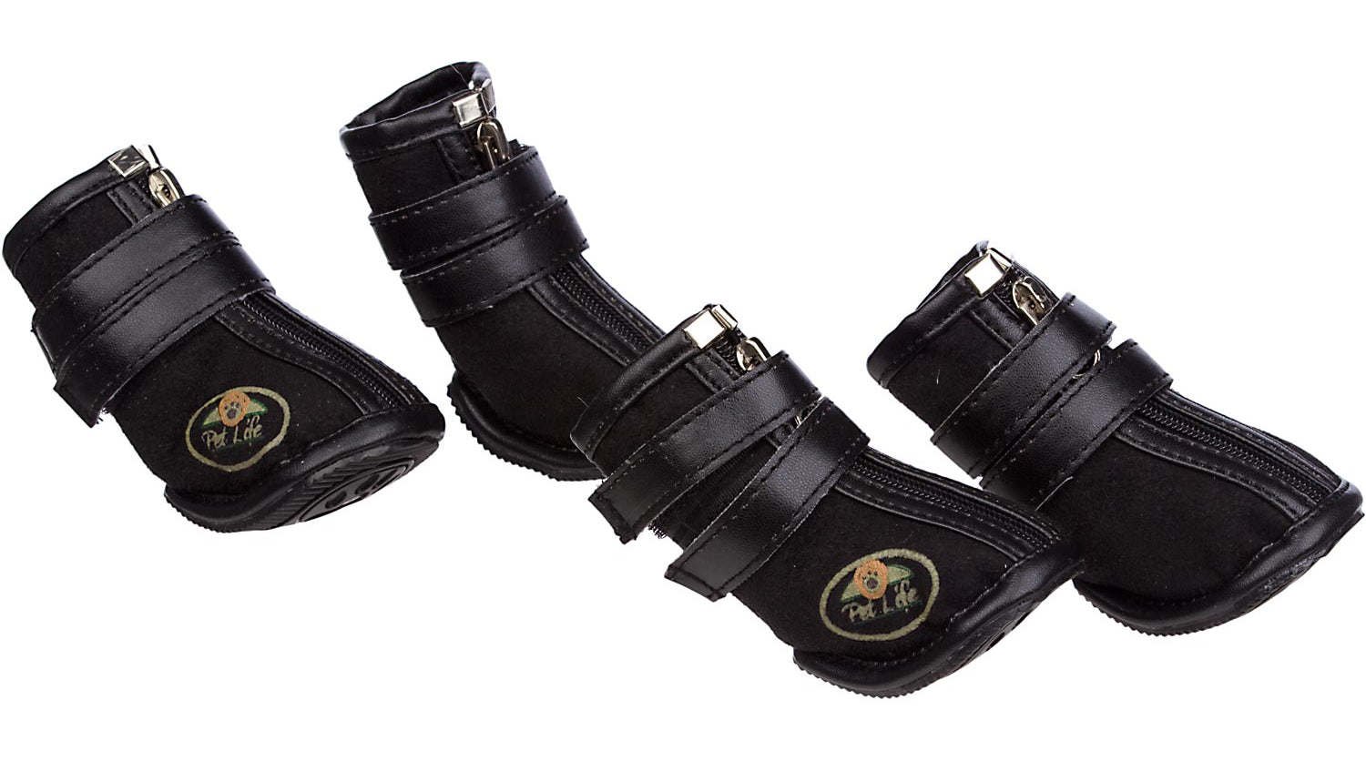 The Pet Life Ruff Tough Suede Dog Shoe Sneakers are composed of a Tougher Suede Outer shell and inner lined with Thinsulate insulation. Features a Back Zipper and Double Wrap Around Velcro for Easy On Off access and added support and comfort. These Dog Shoes offer a higher level of ankle support. Features Rubberized Grips. These Shoes are essential during the Colder and Hotter weather climates protecting your dogs paws by helping prevent Frostbite and Protects your Dogs Paws against the Hot Asphalt. Essential for Dogs in Recovery and especially elder dogs and puppies.
