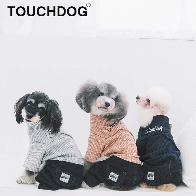The Touchdog Vogue Neck-Wrap Sweater and Denim Pant Outfit is a 1 Piece outfit stitched together. This Full-body Dog Sweater is well crafted with a fashion-forward ribbed collar overlay that looks ultra-modern and trendy and comes together nicely with our Denim pant. The sweater is nice and breathable and features dual accented pockets along the backside and elastic conformed tubing throughout the length of the body that adds room for growth and provides a more tailored fit. Has a nice and comfortable stretch and feel throughout the outfit and completed with our embroiderery along the back and pockets. Available in Multiple Sizes and Colors.